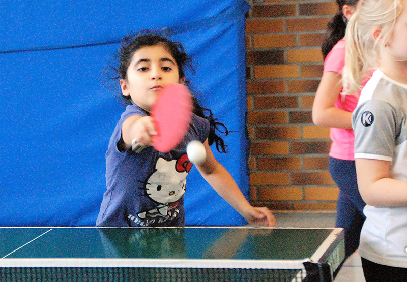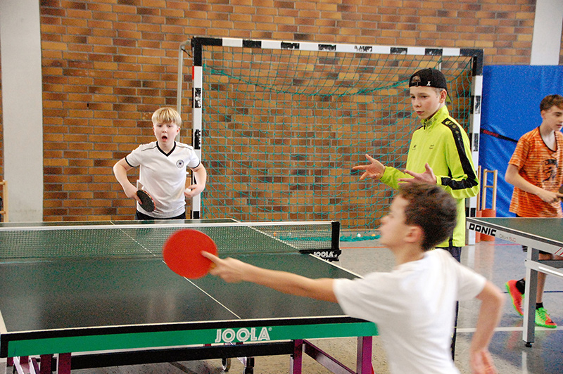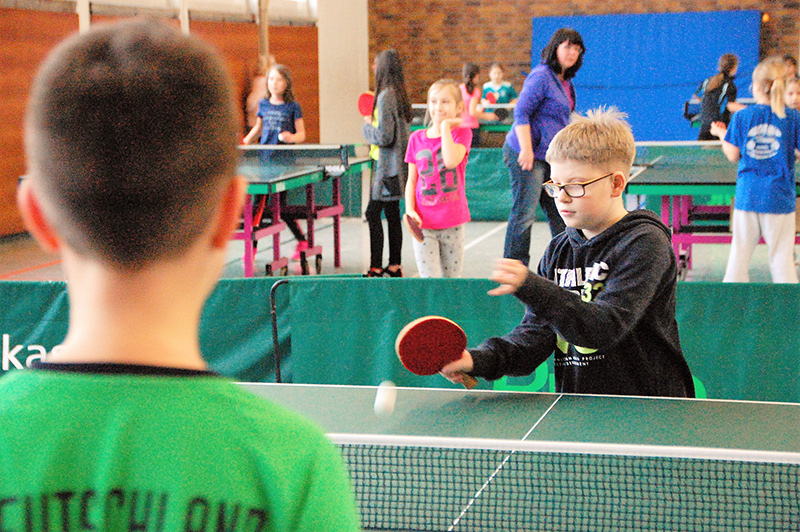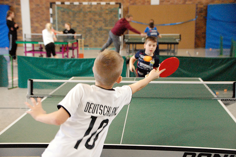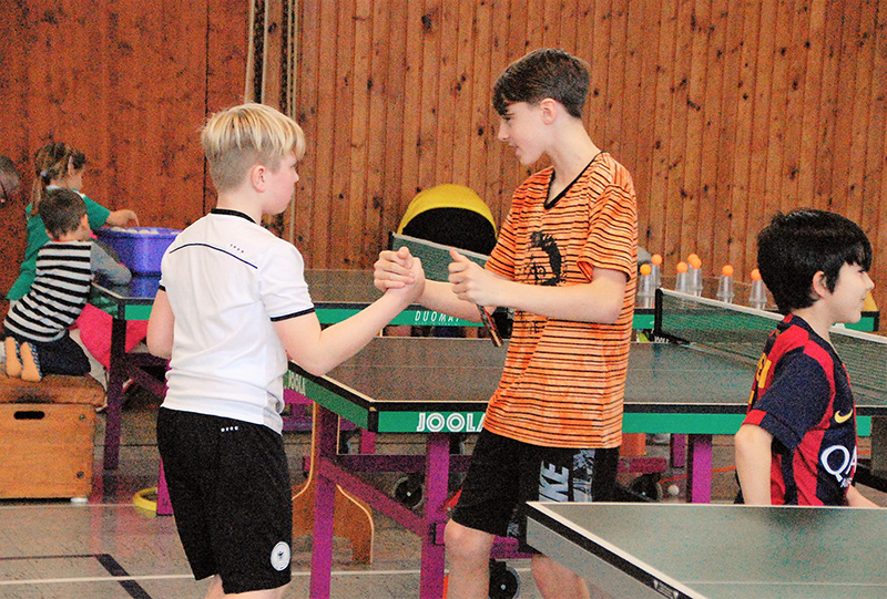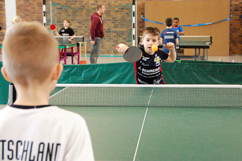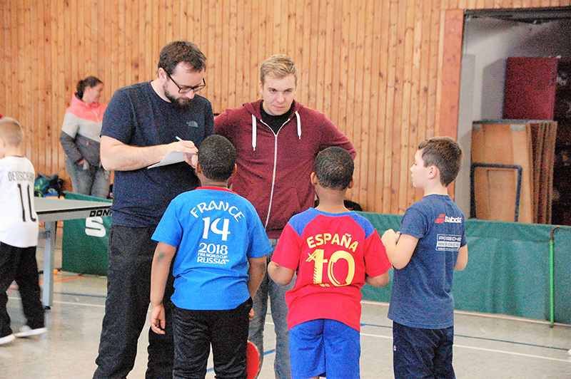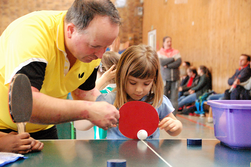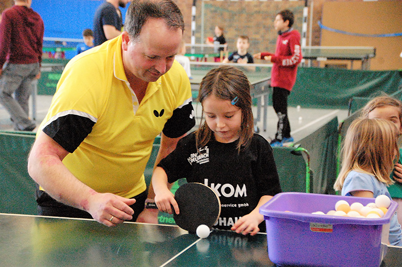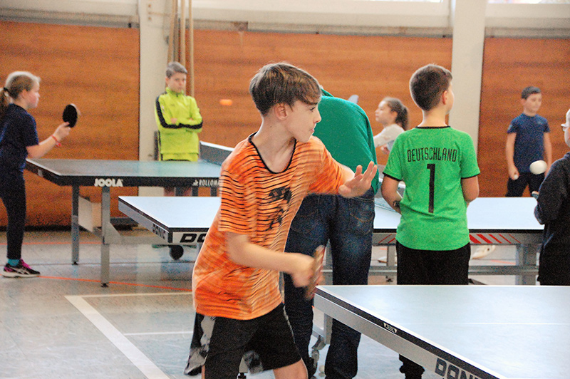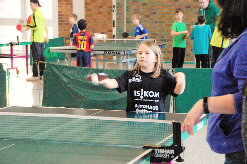 Mit großem Gewusel und entsprechendem Geräuschpegel absolvierten die Teilnehmer ihre Spiele in insgesamt sechs Wettbewerben. So wurden in den Altersklassen Jahrgang 2006/07, Jahrgang 2008/09 und Jahrgang 2010 und jünger die männlichen und weiblichen Mini-Meister gesucht und gefunden. Die ganz kleinen Kinder, die noch nicht einmal über die Platte schauen konnten, wurden von Bezirkskader-Trainer Frank Himmelsbach spielerisch an den Tischtennissport herangeführt.