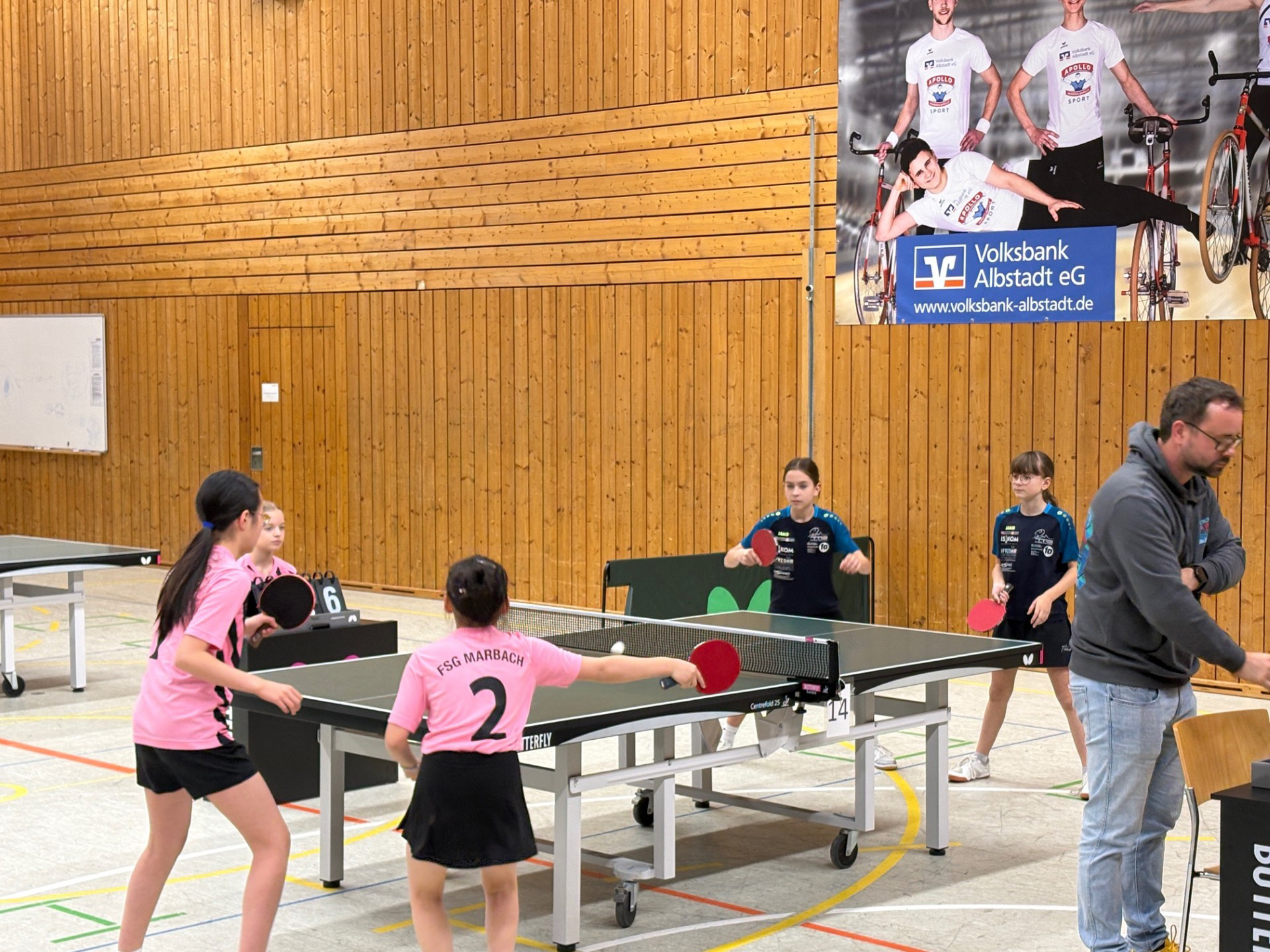 Emilia Ehret konnte einen Satz für sich entscheiden und war im vierten Satz sogar nah an einem weiteren Satzgewinn, vergab leider zwei Satzbälle. Auch Mathilda Hummel gelang es, gegen eine deutlich stärkere Gegnerin einen Satz zu gewinnen. Juli Himmelsbach beeindruckte trotz ihres jungen Alters mit sehr solidem Tischtennis, ebenso wie Celine Ruf. Gemeinsam konnten Ruf und Himmelsbach im Doppel sogar zwei Sätze gewinnen, mussten sich am Ende jedoch ebenfalls knapp mit 2:3 geschlagen geben.
