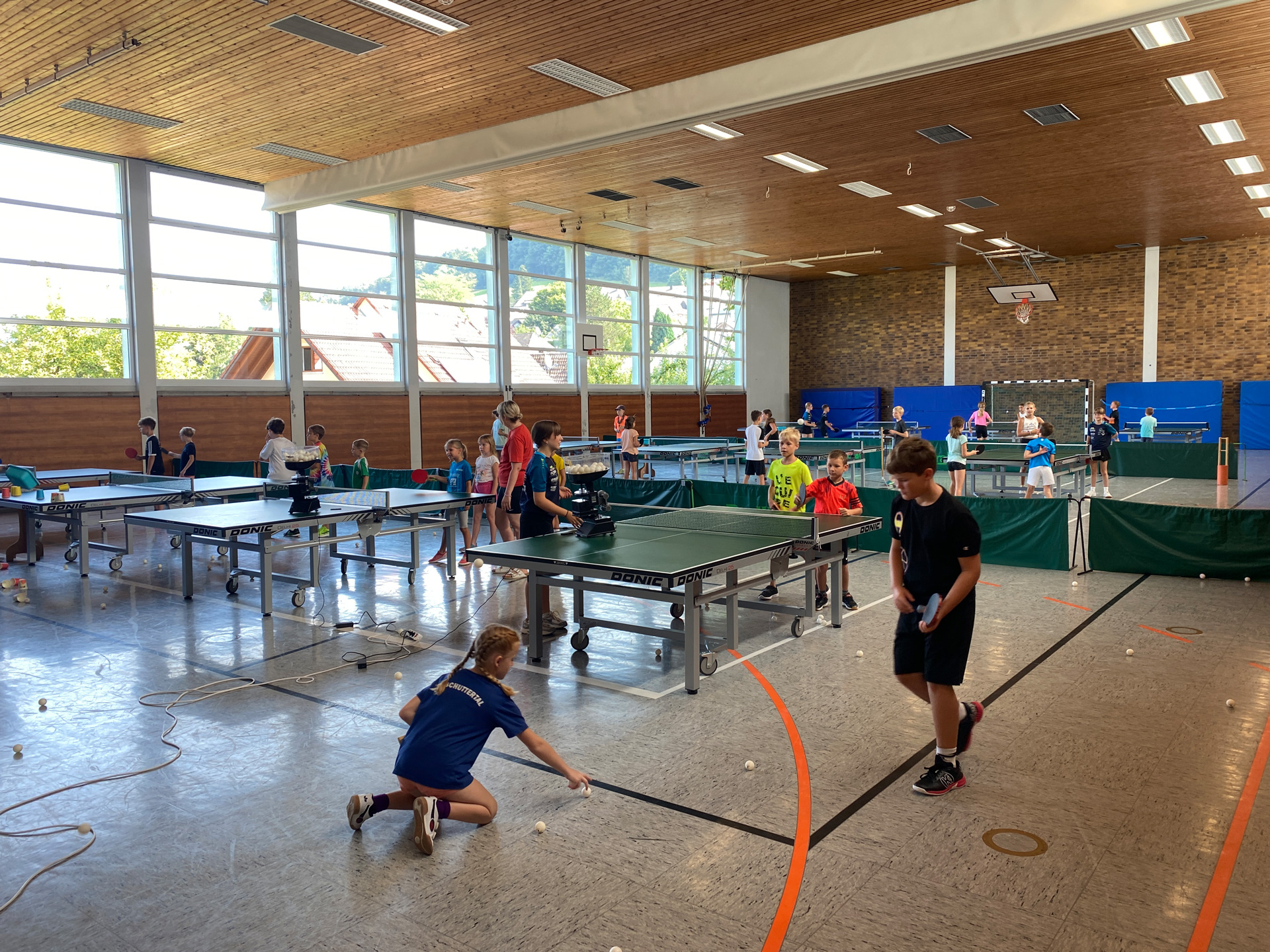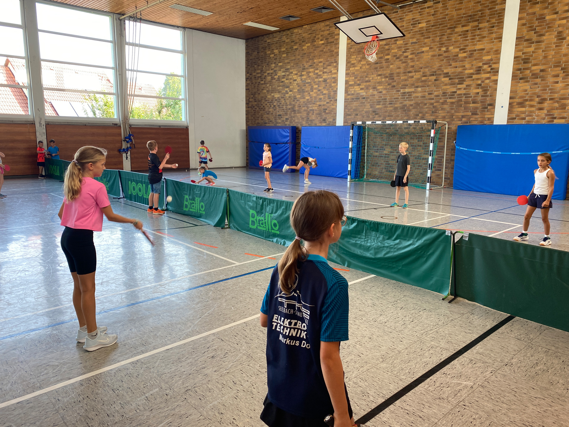 Zu Beginn der Sommerferien nahm auch der TTC am Ferienprogramm der Gemeinden Seelbach und Schuttertal teil. Hierbei konnten die Teilnehmer erste Erfahrungen Tischtennissport sammeln. Zuerst konnten sich die Kinder bei Ballgewöhnungsübungen beweisen, bevor sie erworbenen Fähigkeiten auch in kleinen Wettkampfformen unter Beweis stellen konnten. Anschließend ging es dann auch an die Platten, entweder beim Balleimertraining oder dem Üben mit dem Roboter. Zum Abschluss durfte das allseits geliebte „Riesenrundlauf“ nicht fehlen.