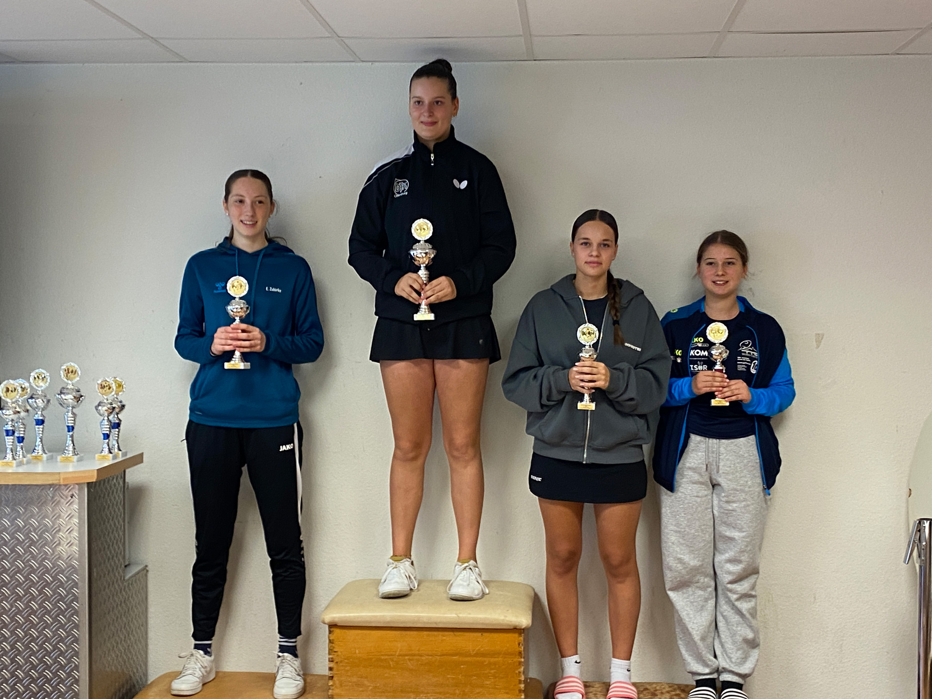 Bei den Mädchen 13 spielte insbesondere Jule Dold ein nahezu perfektes Turnier. In ihrer unnachahmlichen Art brachte sie ihre Gegnerinnen mit ihrem druckvollen Spiel an den Rand der Verzweiflung. Erst im Halbfinale musste sie sich der späteren Siegerin und topgesetzten Leonie Bär geschlagen geben. Mathilda Hummel konnte als Siegerin der Trostrunde ebenfalls sehr zufrieden sein und verpasste nur ganz knapp den Einzug in die Hauptrunde. Aber auch Alara Gülec und Emilia Ehret konnten mit überzeugenden Spielen beeindrucken.