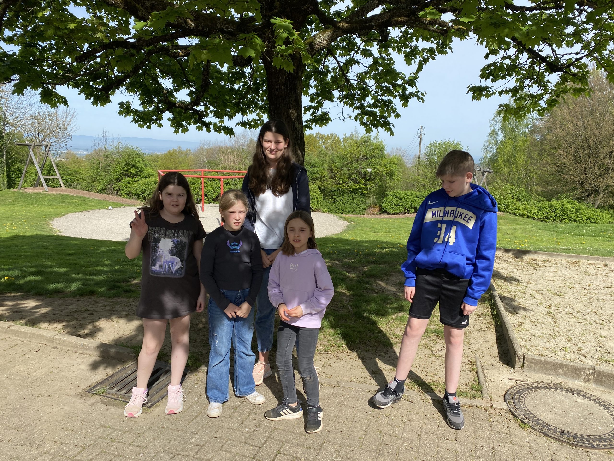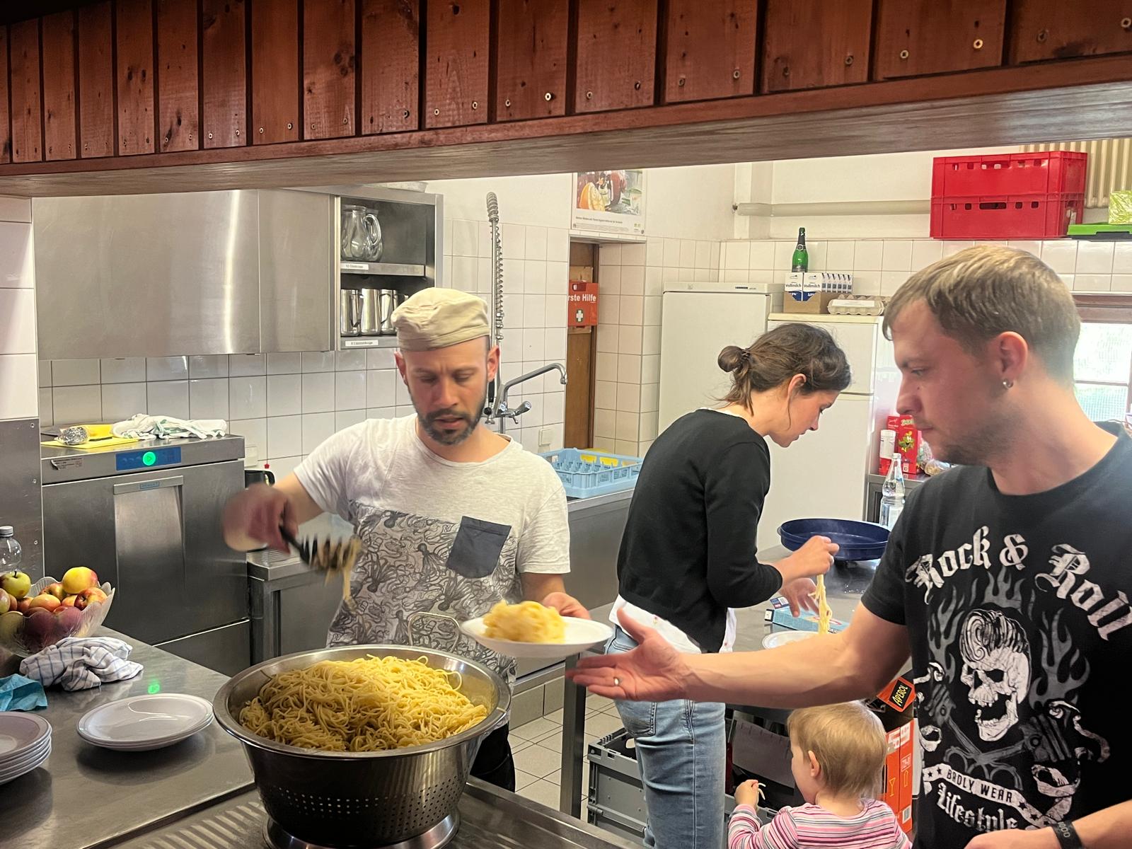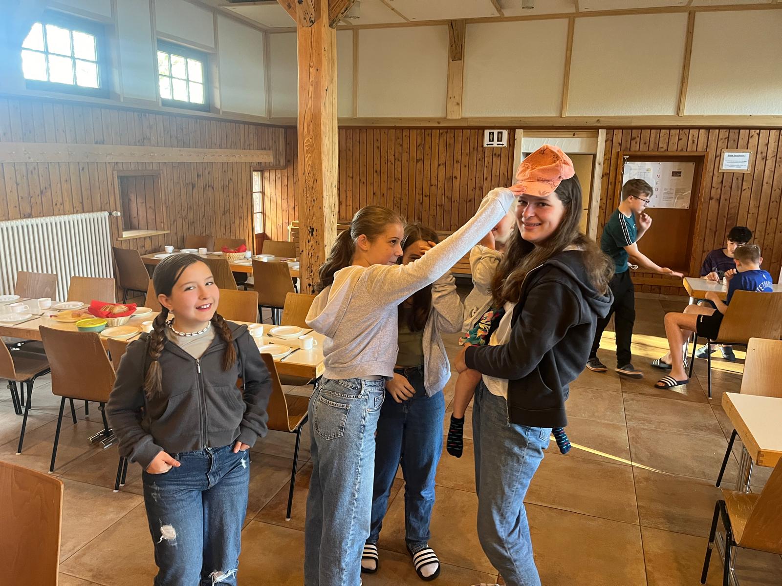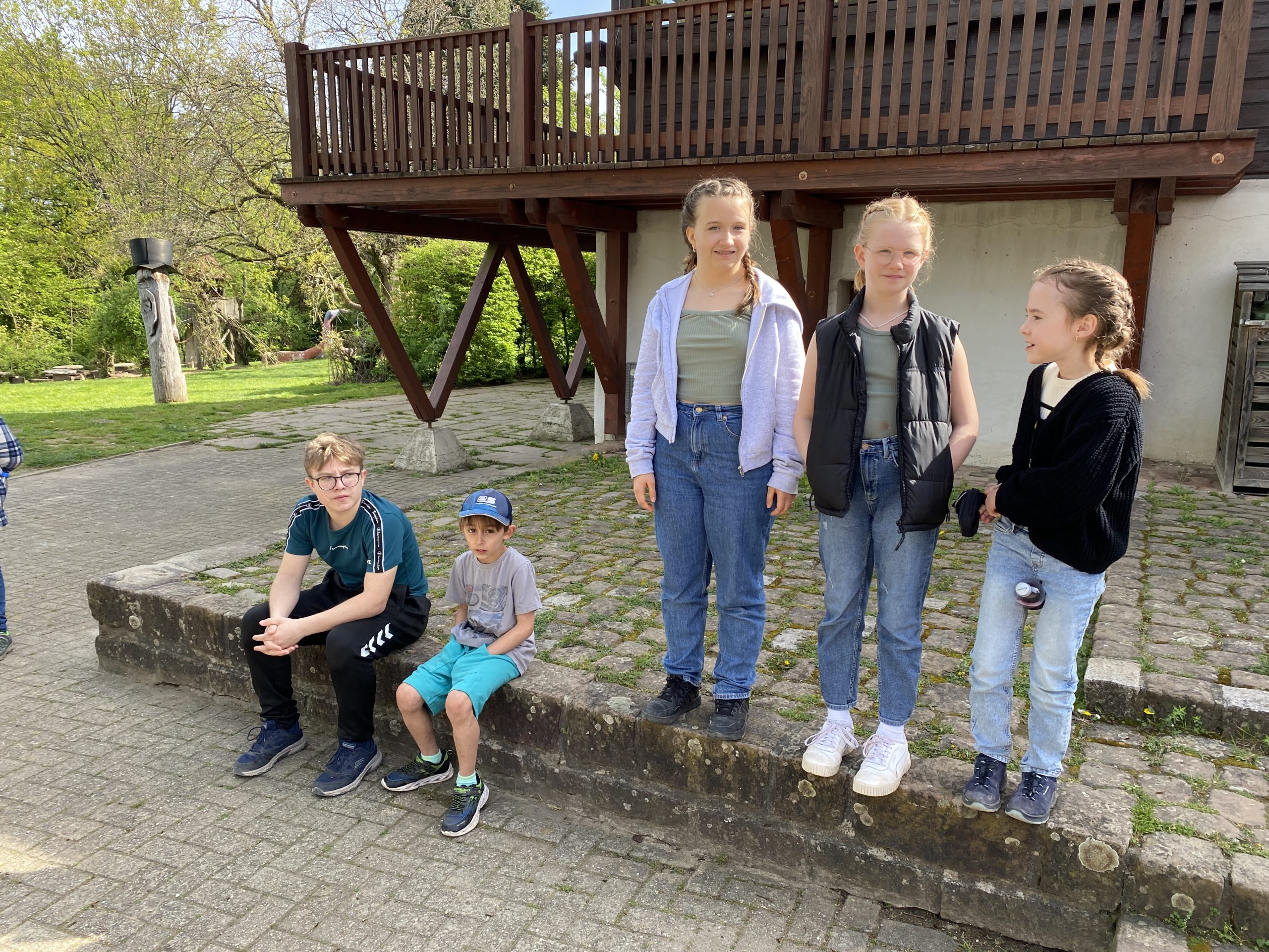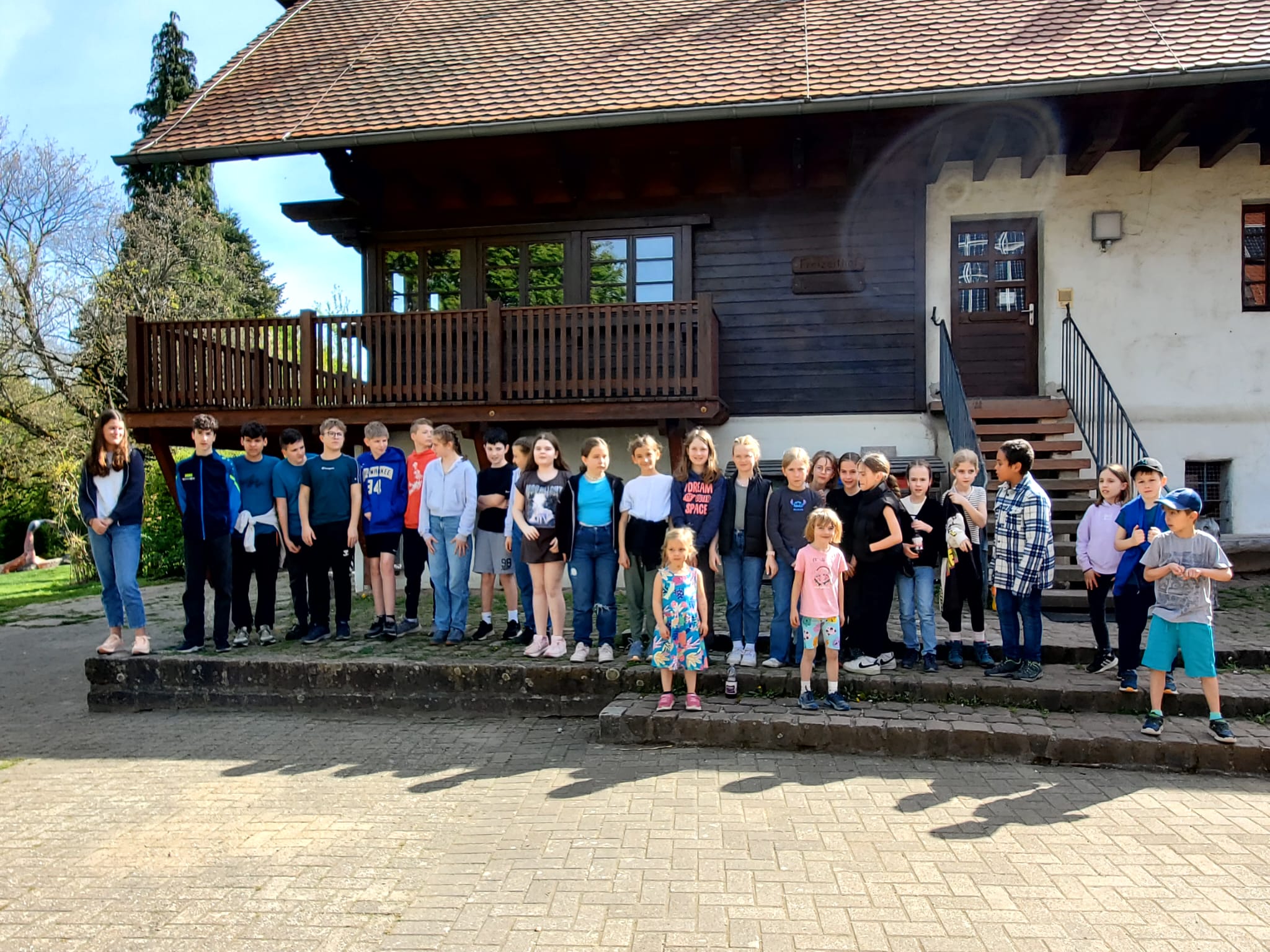 Unser Gepäck wurde mit Autos hochgefahren. Die Wanderung war anstrengend, hat aber allen großen Spaß bereitet. Nachdem alle heil angekommen waren, haben wir die Zimmereinteilungen gemacht und anschließend die Betten bezogen. Danach war die Zeit zur freien Verfügung. Es wurde geschaukelt, gespielt und wir hatten einfach Spaß. Zur Stärkung gab es zwischendurch Spaghetti-Eis. Lecker…! Das Highlight war aber das Fußballspiel, das nach dem Eisessen stattgefunden hat. Nach dem Fußballspiel gingen alle erschöpft zum Lagerfeuer. Als es dunkel genug war, machten wir eine Nachtwanderung. Leider sahen wir weder Tiere noch Gespenster. Doch so schön der Tag auch war, die Nacht war nicht ganz so schön: es war sehr laut und die meisten Kinder konnten erst gegen 2 Uhr einschlafen. Und um halb sieben waren wir dann auch schon wieder wach.