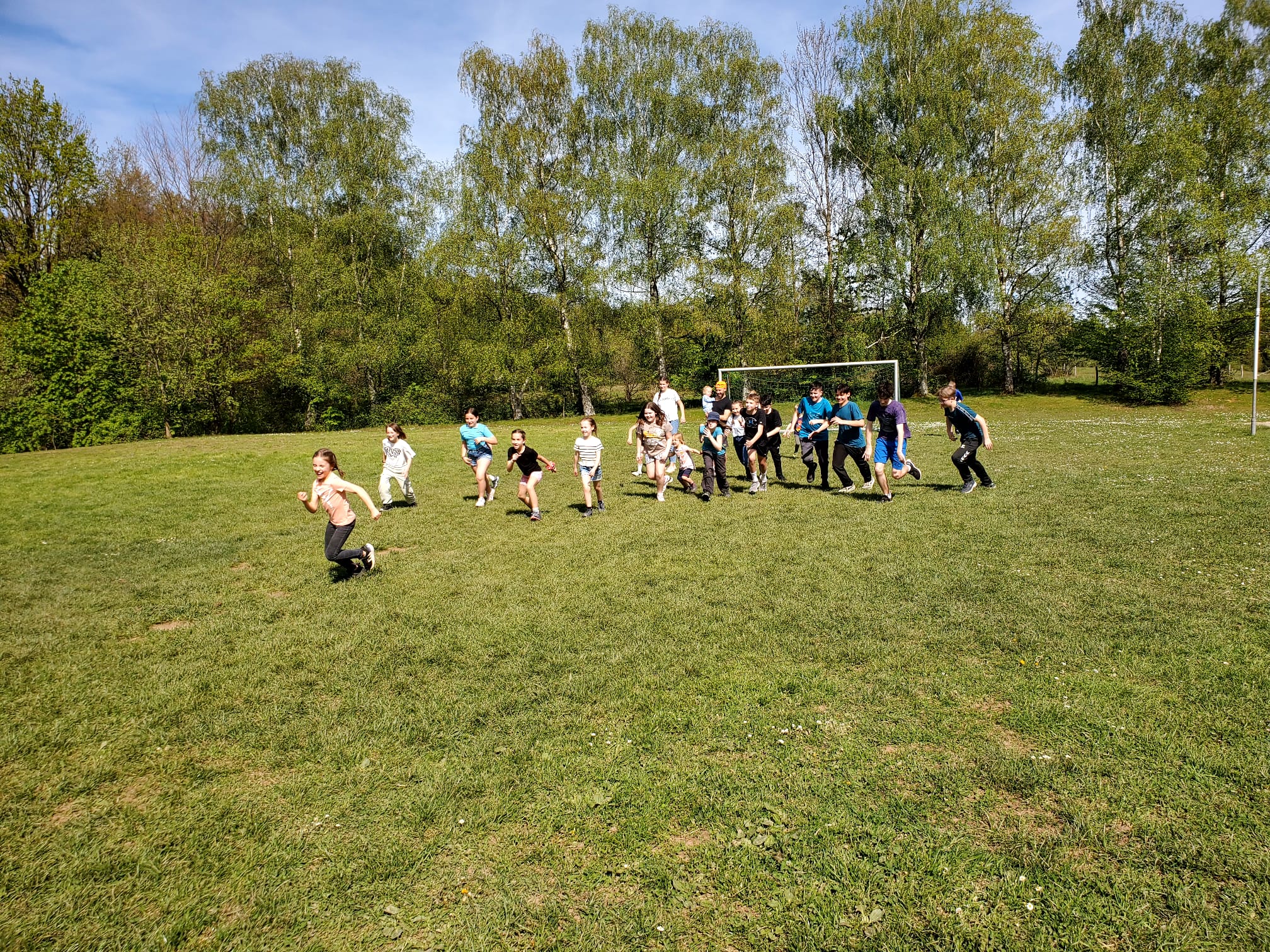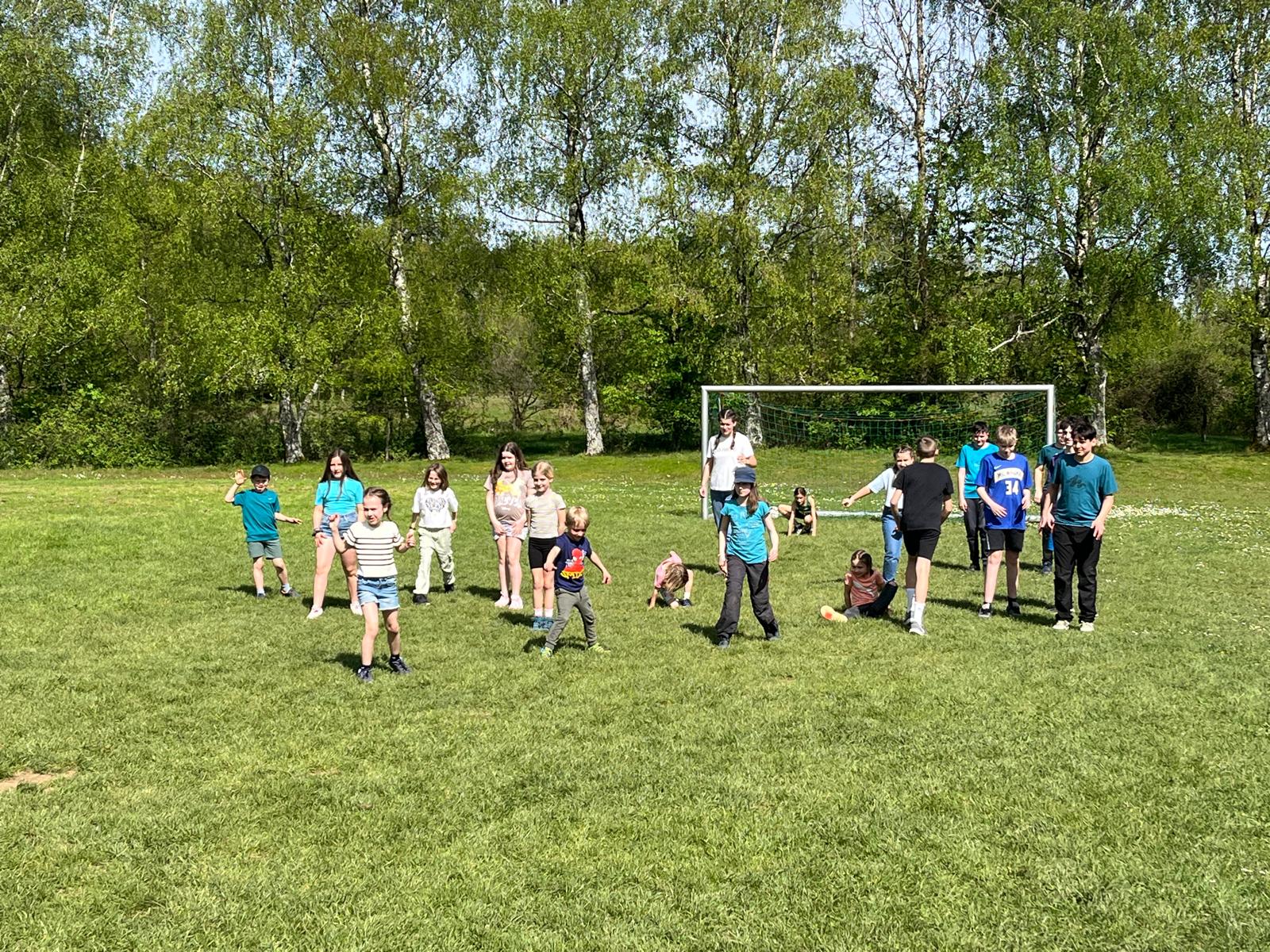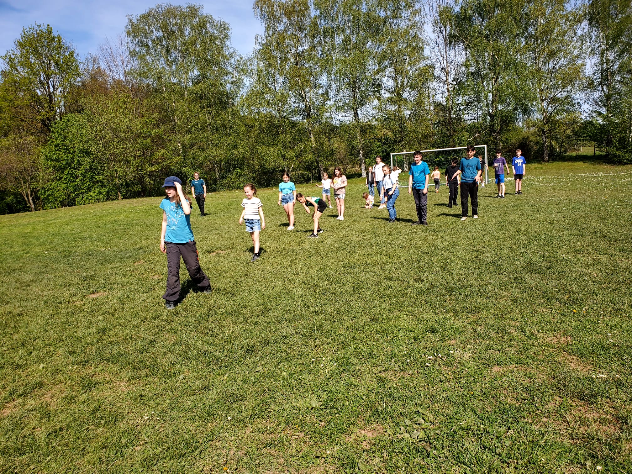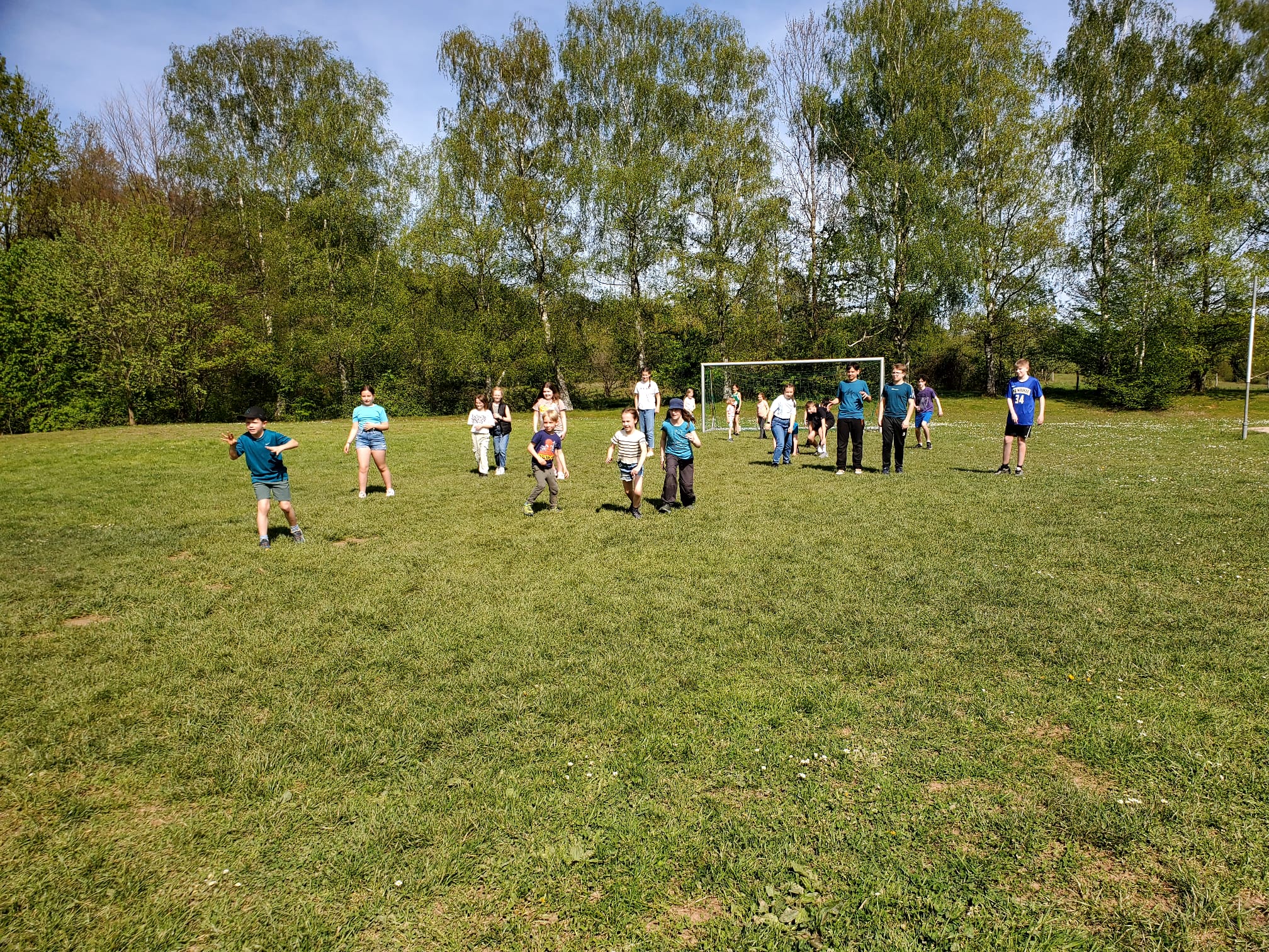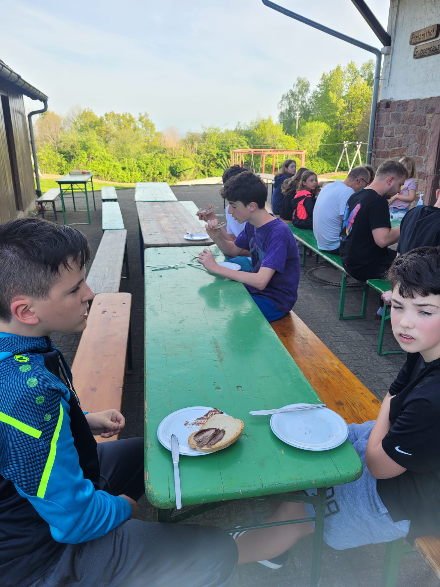 Der zweite Tag begann mit einem leckeren Frühstück. Um halb elf stand dann eine Schnitzeljagd auf dem Programm. Das war sehr toll. Die Gruppe 5 ging als Sieger hervor. Es gab tolle Preise. Am Nachmittag haben wir „Henne hinterm Berg“ gespielt. Wir haben gegen unseren Trainer Tobi gespielt und gewonnen. Anschließend haben wir wieder Fußball gespielt, bevor die Eltern gekommen sind und wir einen gemeinsamen Grillabend verbrachten. Mit Begleitung einer Gitarre haben wir noch lange gesungen. Müde gingen dann alle ins Bett. (Die zweite Nacht war wesentlich angenehmer).