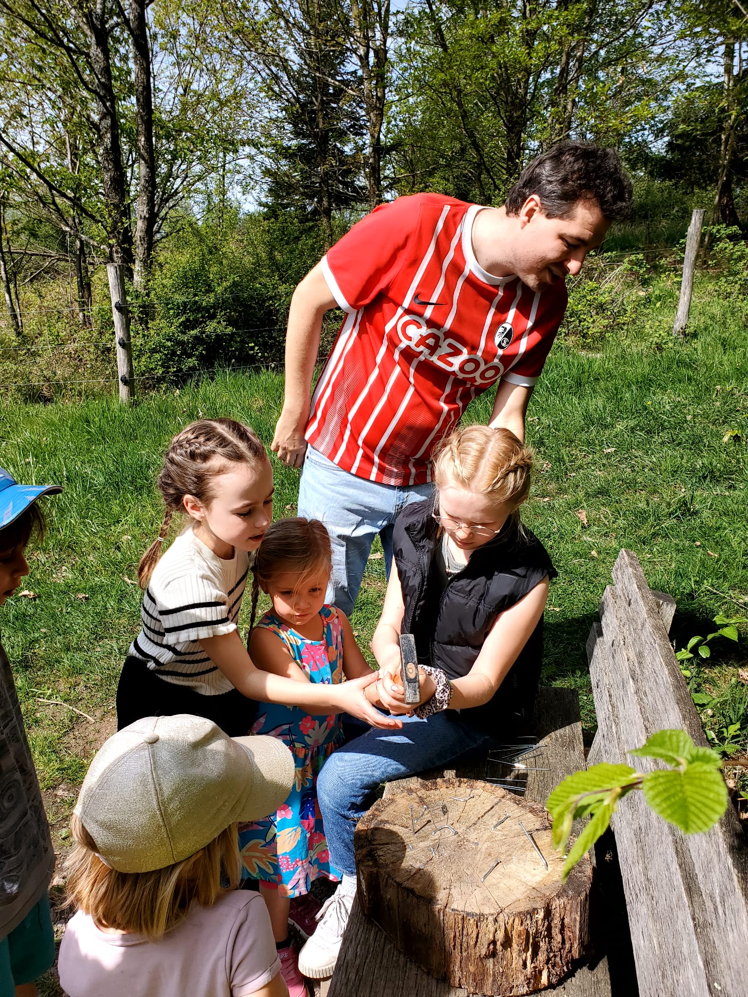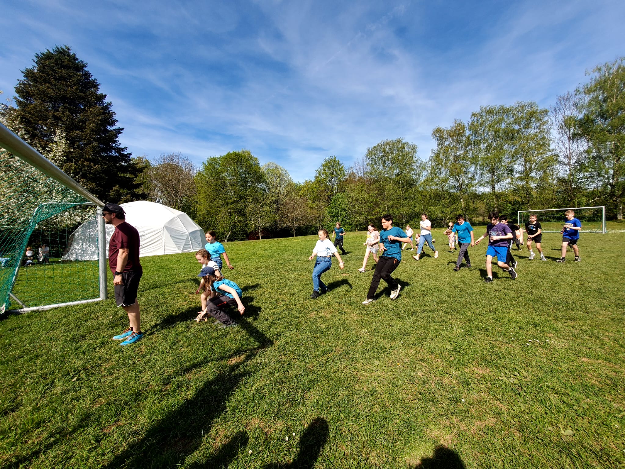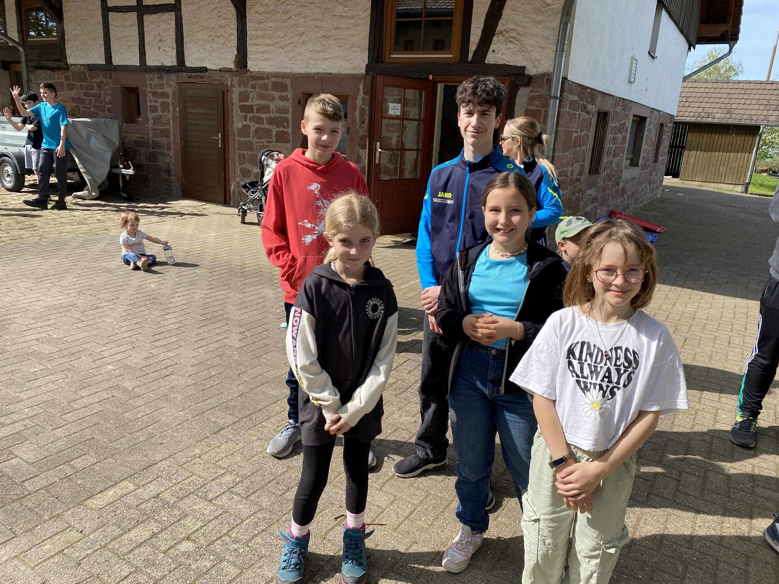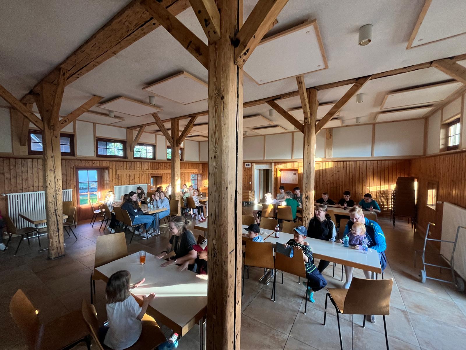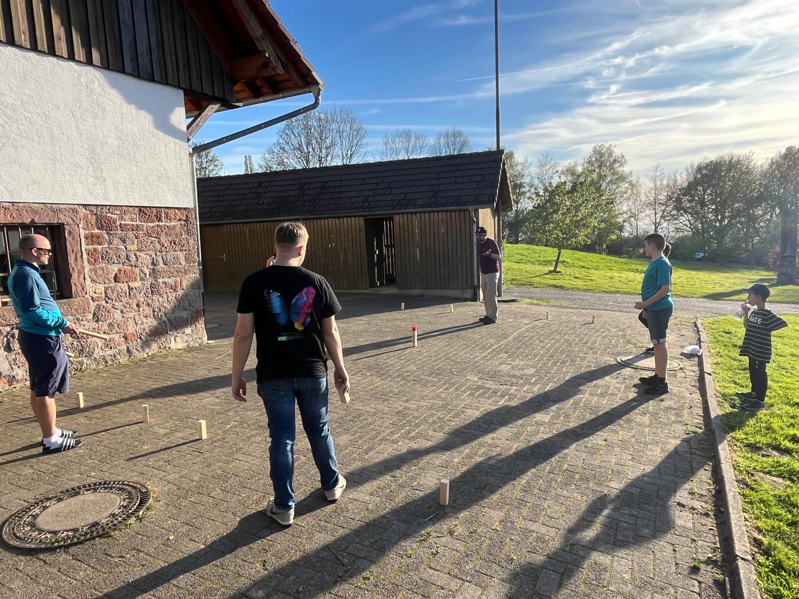 Der zweite Tag begann mit einem leckeren Frühstück. Um halb elf stand dann eine Schnitzeljagd auf dem Programm. Das war sehr toll. Die Gruppe 5 ging als Sieger hervor. Es gab tolle Preise. Am Nachmittag haben wir „Henne hinterm Berg“ gespielt. Wir haben gegen unseren Trainer Tobi gespielt und gewonnen. Anschließend haben wir wieder Fußball gespielt, bevor die Eltern gekommen sind und wir einen gemeinsamen Grillabend verbrachten. Mit Begleitung einer Gitarre haben wir noch lange gesungen. Müde gingen dann alle ins Bett. (Die zweite Nacht war wesentlich angenehmer).