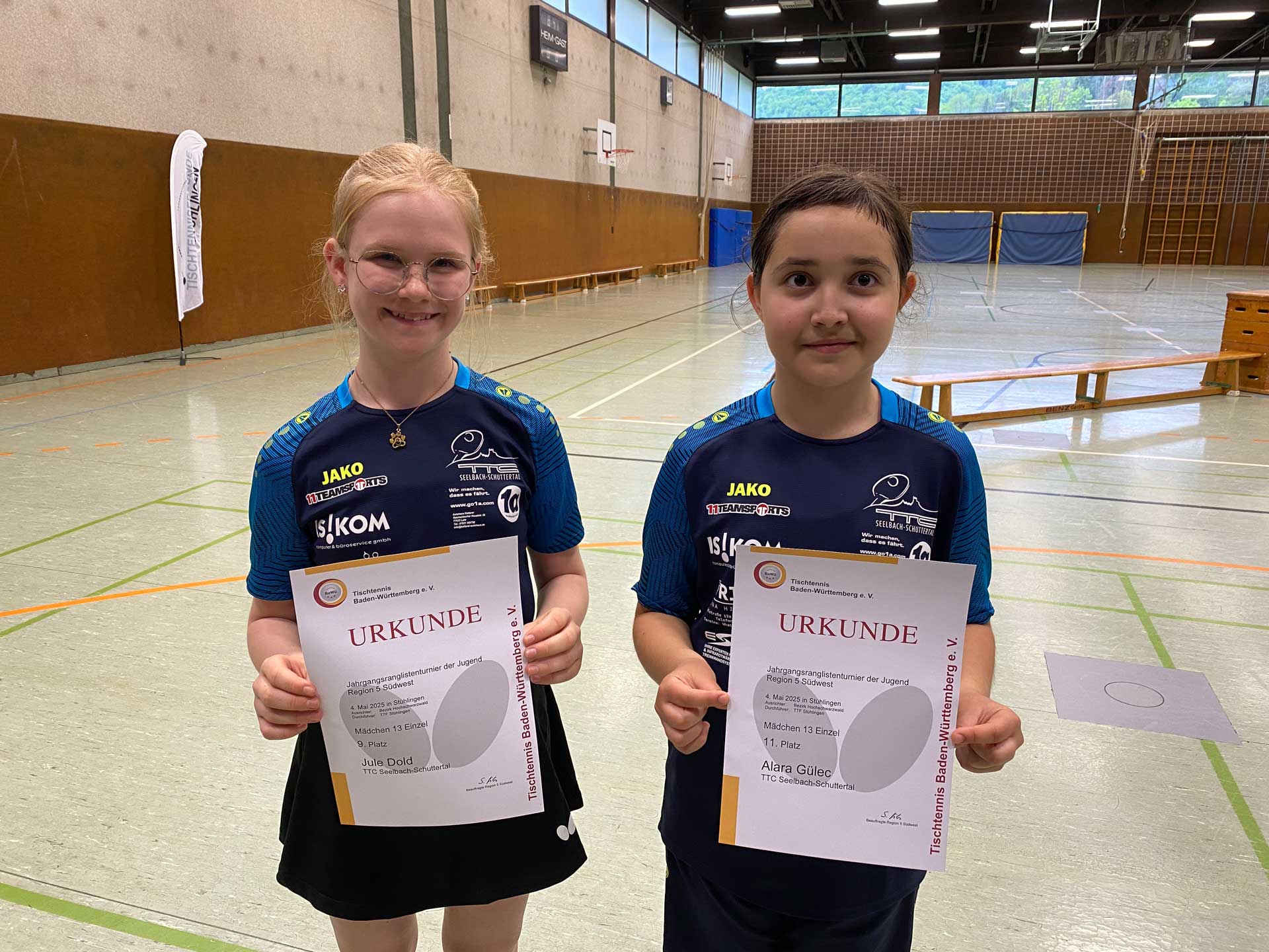 Alara Gülec und Jule Dold qualifizierten sich für die Südbadische Endrangliste der U13 am 4.5.25 in Stühlingen.