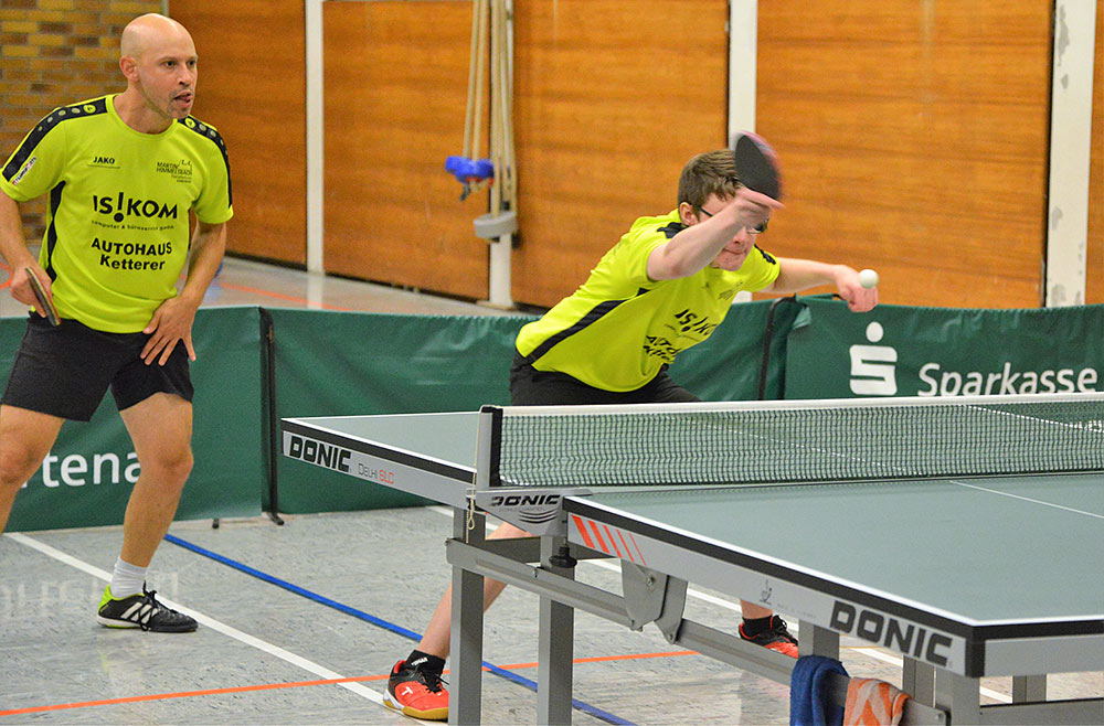 Zu Beginn sorgte Tobias und Andreas Hummel für den einzigen Doppelpunkt. Da es an diesem Abend im vorderen Paarkreuz lediglich einen Sieg gab (Tobias Hummel gegen Clemens Huber), mussten es das mittlere und hintere Paarkreuz richten. Oldie Mathias Kunz und Youngster Leon Hilss gewannen beide 2 Einzel und brachten den TTC auf die Siegerstraße. Im hinteren Paarkreuz haben sowohl Christopher Schmidt als auch Lukas Bühler ein Einzel gewonnen und den Vorsprung verteidigt. Im Schlussdoppel haben dann Tobias und Andreas Hummel mit einem 5-Satz-Sieg den Deckel drauf gemacht für den 1. Sieg in der Bezirksklasse.
